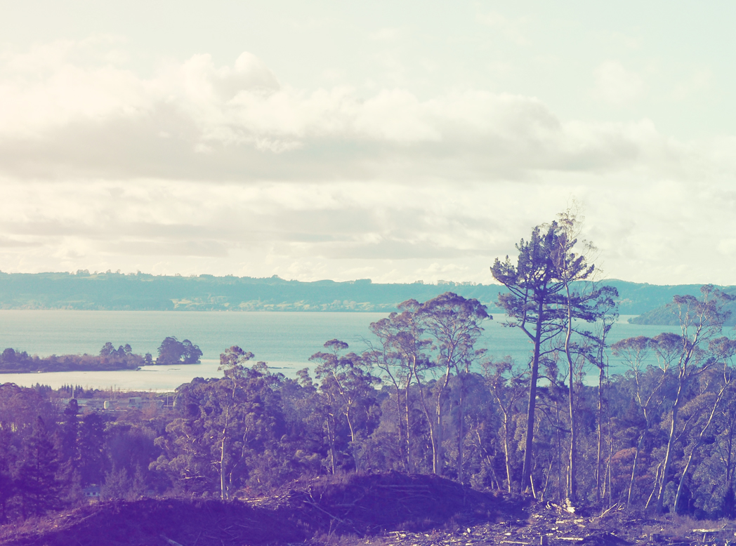 Ci-dessous, Rotorua, son lac et ses odeurs ( ça sent le soufre…)